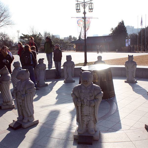 了解韩国人的民俗生活史,漫步室外展馆,与十二生肖铜像合影。