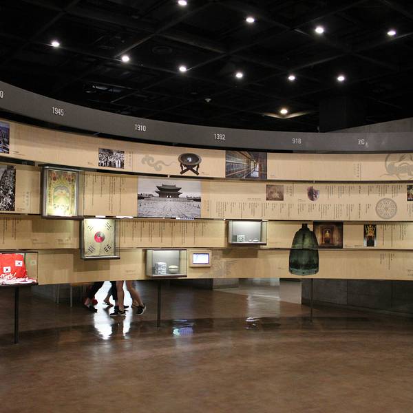 景福宫内的国立民俗博物馆展示了韩国传统生活方式,通过各种历史文物了解并体验到韩国人民的传统生活与文化。由“韩民族生活史馆”、“韩国人的日常生活”、“韩国人的一生”3个常设展览以及企划展览、室外展览等构成。 在入口处的咨询服务台可以租到中文语音向导机,租借费用为1000韩元,但需要你出示本人护照。另外,这里常驻会中文的工作人员,若有不懂的问题,可以向咨询服务台咨询。10:00和15:00安排有中文讲解员进行中文讲解。 博物馆的组成 博物馆由地下一层、地上四层以及顶楼组成。地下一层是保管资料的水浆库,一层是中央大厅和3个常设展厅以及讲堂,二层是行政办公室,三层是阅览室。一层的中央大厅常年举办传统文化民俗特别展。首先游览的是第一展厅韩民族生活史馆。这里重点展示史前时代到现代与韩民族历史及文化有关的生活史资料。你可以看到朝鲜时代的太阳表仰釜日晷、新旧法天文图、当时人们用的白瓷器皿以及70-80年代韩国人的生活情景。 第一展厅 在第一展厅内,还设有一个可以拼写韩文的显示器,有中文提示。拼几个韩文后,显示器会自动为你读出来。选择中文单词的话,会为你翻译并发出声音,你能在这里体验韩语的趣味。 第二展厅 接着是第二展厅,以“韩国人的日常生活”为主题。展示了一年中,随着四季的变化,以农耕为生的朝鲜时代百姓们的日常生活。你可以看到农耕、渔猎场景以及服饰、房屋、手工艺品、装饰品、碗、泡菜和酱缸等。除了按照春夏秋冬的顺序展示了人们的生活之外,还可以看到能了解当时集市及村庄景象的资料。 第三展馆 第三展馆是韩国人生活展示馆,展示韩国人出生、成人仪式、婚礼、祭祀等各个阶段的生活面貌。其中有关生意惯例以及民俗信仰的内容非常引人注目。 企划展览 除了常设展览外,这里还有企划展览,以1-2个月为周期举行一些特别的展出。具体展览信息详见官网。 室外展览场 与此同时,国立民俗博物馆的前院还是一个室外展览场,展览主题为韩国传统农村文化,展品包括保佑村庄平安吉祥、风调雨顺、五谷丰登的长生柱、石塔、鸟竿,还有反映民俗生活的石磨、瓜棚、谷仓、泡菜窖等。另外,这里还有过去首尔市清溪川水位测量仪的复制品、十二座兽首人身的十二生肖铜像以及济州岛特有的石头爷爷。这些展品吸引了无数观览游客的脚步,你可以在这里合影留念。 民俗体验活动 博物馆内针对团队游客还会定期举行一些民俗体验活动,如试穿韩服、制作民俗工艺品、学习韩国传统舞蹈和游戏等。小朋友还可以去馆内的儿童博物馆体验一些针对小朋友的活动。 此外,这里还设有其他的便利设施,如可以使用电脑的信息检索室、设有自动售货机的休息室、可以买到各种纪念品的博物馆商店,以及咖啡厅、礼堂、影像厅等。天气好的时候,馆前有个大大的草坪很多游客都在上面晒太阳,很是舒服。 展览解说 国立民俗博物馆为了通过生活遗物帮助人们更详细理解民俗文化,提供了专业讲解员的展览解说项目(展览解说预约与参观预约分开进行,外语展览解说仅针对外国参观游客)。