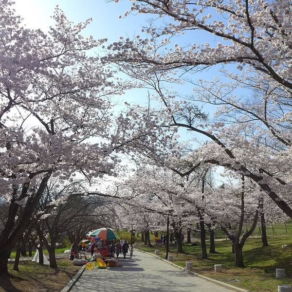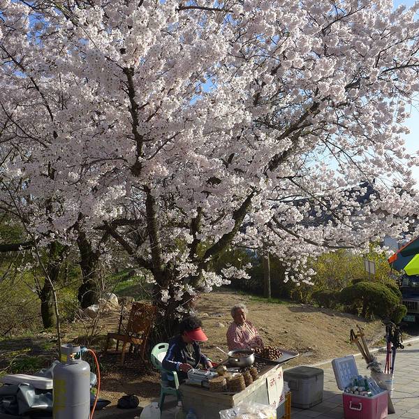 约半小时左右到达佛国寺公园继续樱花林和小吃摊约半小时左右到达佛国寺公园继续樱花林和小吃摊巨大的樱花树林