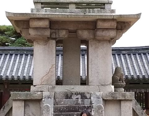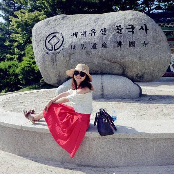 佛国寺(世界历史文化遗产)是韩国最大的寺庙,被誉为韩国最精美的佛寺其实整个佛寺逛完也就半个小时左右的时间,要与中国的寺庙相比,的确小得不足为奇。但它却保留着独有的韵味,很完整很古朴的寺庙,绝对够你慢慢逛、慢慢品、慢慢感受院落的布局极具特色,保存了廊院式平面格对、空间形态,每个殿宇中都由专人看护,要进去是必须脱鞋滴。值得庆幸的是,那天的游人不算多,可以给我们舒坦的拍照我喜欢佛寺内的长廊,往那儿一站,有种穿越的赶脚,哈哈~园内有很多堆叠的石子,这是韩国人的一种祈福许愿方式——堆石许愿~佛寺中的绿化也很不错,树木茂密,形状我可以用可爱来形容吗? 看着这些郁郁葱葱的绿树,让我不经想到秋意正浓时的佛国寺应该也别有一番韵味吧,佛寺里还有冰凉的泉水供大家饮用~附注: 地址:庆尚北道庆州市辰岘洞15-1号 交通线路: 1、石窟庵 ↔ 佛国寺停车场 08:40 ~ 16:20,。1小时发车间隔 2、庆州市 - 佛国寺 在庆州站前或市外客运站乘车方便。 10, 11路市内巴士(06:00 ~ 21:55, 每隔16分钟发车) 门票:(7:00—18:00) 成人 :4,000韩元 青少年:3,000韩元 儿童:2,000韩元