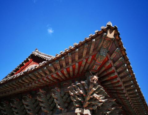 山上的空气也很好,回廊设计,石头的台基本,木制的房架,红漆柱子,五彩缤纷的房梁,和中国的古建筑...天气晴朗,山上的空气也很好,回廊设计,石头的台基本,木制的房架,红漆柱子,五彩缤纷的房梁,和中国的古建筑风格差不多,不愧是世界文化遗产。