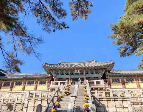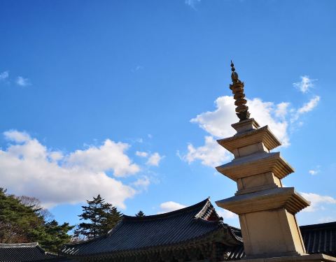 佛国寺是新罗文化的核心,是新罗佛教艺术的经典,是世界文化遗产。1440年前,新罗法兴王22年,为维护国家安定和百姓平安,建造了佛国寺,后来几经修缮。在寺里,沿着山脊往上走就能看到有名的石窟庵,里面有面朝东海的东方较大的如来坐像。 寺内的多宝塔,释迦塔,蓝云桥和两座金铜大佛等7个文物被列为韩国国宝。1995年,佛国寺和位于其东部的石窟庵一同被列为世界文化遗产。