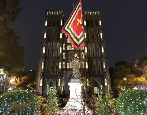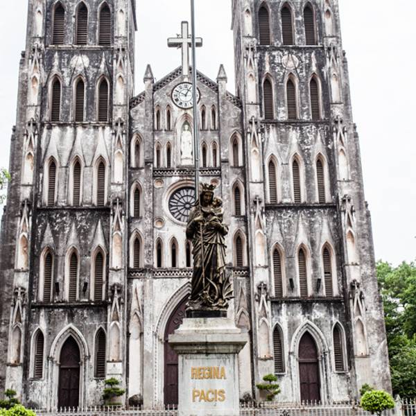 沿着河内老城区古朴的街道,很快便可以步行至这座精美的大教堂。今天的教堂,虽然外表看来有点斑驳,但内部装饰繁复的主坛,彩绘玻璃窗,以及教堂外方形的塔楼,都拥有极高的艺术价值,非常值得驻足观赏。