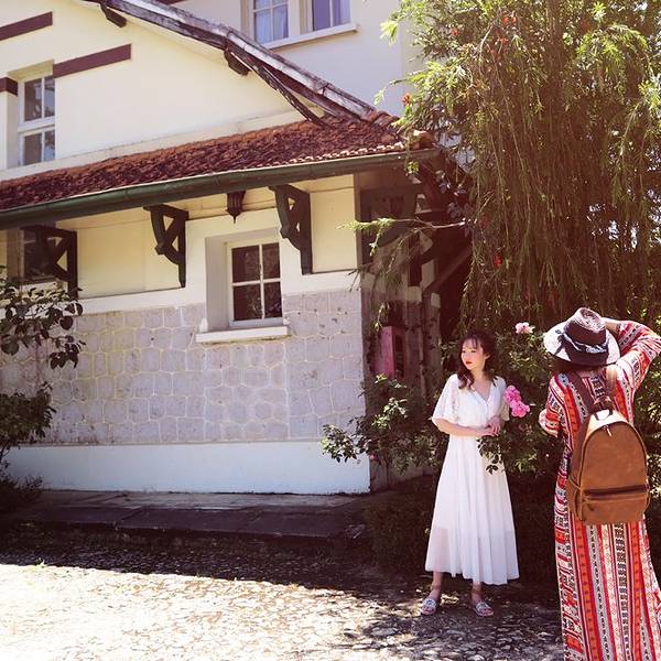 满院子的绣球,美翻了。这是手机实拍的一张现场图,依然超美的花园去找老别墅的时候,经过了保大3号避暑行宫,里面有个超大的花园,但不是我们此行的目的地就在门口看了下就离开了。满院子的绣球,美翻了。这里的老别墅群也太有质感了,好复古。对着门口的这个别墅就是接待服务处...去找老别墅的时候,经过了保大3号避暑行宫,里面有个超大的花园,但不是我们此行的目的地就在门口看了下就离开了。满院子的绣球,美翻了。这里的老别墅群也太有质感了,好复古。对着门口的这个别墅就是接待服务处了。现在进去参观都要门票了,私导跟他们混的熟就蛮便宜的,每人2万越南盾貌似,反正挺便宜。往里走基本都是要步行了。好多绿植和树林,天然氧吧和别墅的结合,让你想懒在这树林里吹吹风发发呆。数不清多少个别墅了,大概十几个左右吧,大大小小的间隔不远不近的独栋别墅。每家门口都有大树基本。我们选了这栋。栏杆是墨绿的木质扶手。接下来是一批睁不开眼的花絮哈哈。这几张是小仙女小霜姑娘给拍的。辛苦了华姐,化妆和负重的活儿都归你啦。绣球在大花园里随处可见,然后一片一片的太绚烂。这是手机实拍的一张现场图,依然超美的花园。绣球之多。太爱这里了。给华姐来张小清新,我的小微单也出镜啦。后院有颗很爱的数,不知道名字,分枝散漫,感觉季节到了会开满花的。跟后面的白墙太搭。 展开