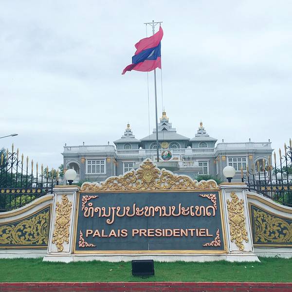 似乎是我国援建的建筑,所以看起来大概和国内的很多建筑相似,离湄公河不远。