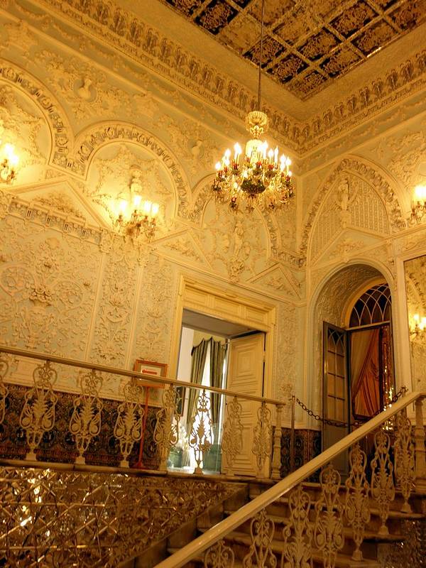 格列斯坦王宫是德黑兰较为古老的一座王宫,又称古列斯坦宫。王宫介于霍梅尼广场和巴扎之间,交通很是便利。由数座雄伟的建筑组成。王宫见证了恺加王朝统治者的荣耀和奢靡。 大理石宝座大殿 从门口沿着长长的水池便来到了大理石宝座大殿(Ivan-e Takht),这是一座装着镜子、前开式的大殿,中间是华丽的宝座。大殿是用来举办仪式的,中间的宝座是由人像支撑,由60多块条纹大理石建成。 艺术馆 离开大殿之后,你会来到艺术馆(Negar Khane),馆内陈列着许多恺加时期的艺术作品。馆中还有一副沙阿(波斯语古代皇帝头衔)的肖像,画中人物佩戴的珠宝和皇冠你都可以在国家珠宝馆看到。 镜厅 之后来到王宫中尤为出名的镜厅(Talar-e Ayaheh)。镜厅当年是专门为孔雀宝座而建的,如今的孔雀宝座被移至了国家珠宝博物馆。走进镜厅立刻便能感受到它的美轮美奂,在镜厅内陈列来自世界各地的珍宝,包括一个大型绿色孔雀石花瓶和10多个巨大的枝形吊灯。 池宫 出了镜厅继续向东是池宫(Howze Khaneh),因其中间的小水池和喷泉而得名。室内陈列着19世纪欧洲的绘画和雕塑。 太阳宫 王宫里的游客不多,宁静的庭院静候着慕名前来的仰慕者。壮观的太阳宫混合了欧洲和波斯的建筑传统。宫殿的内部是一连串以镜子和瓷砖作为装饰的房间,存放着大量照片以及欧洲君主们馈赠的家具和花瓶。 风塔宫 在隔板还可以看到四座高耸的风塔,用作通风,下方是风塔宫,其浮华的内部装饰非常值得一看。来到地下室的老照片陈列室(Aks Khaneh),这里陈列着大量描述恺加宫廷生活的照片。 钻石宫 接下来来到小巧的钻石殿,在钻石殿中一个红色墙壁、瓷砖地面的房间内,陈列着各种装饰艺术品,尤其是18世纪和19世纪法国的陶瓷制品,非常值得一看。此外,钻石殿内迷人的地下茶室或许更具有吸引力,若有时间,不妨前去看看。在这里慢慢地喝一壶伊朗红茶,静听数百年波斯的风轻轻吹过树梢。