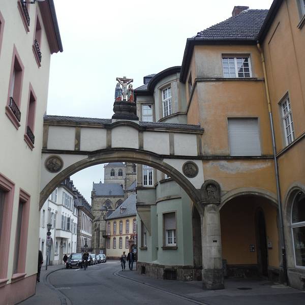 金骆驼 Trier是德國最古老的城市,有兩千年以上的歷史城市內可以見到羅馬遺跡。今天到Trier今天到Trier。這個城市距離法蘭克福比較遠,搭火車需要在Koblenz轉車,整個車程要三個多小時左右。抵達時已經快十二點了。