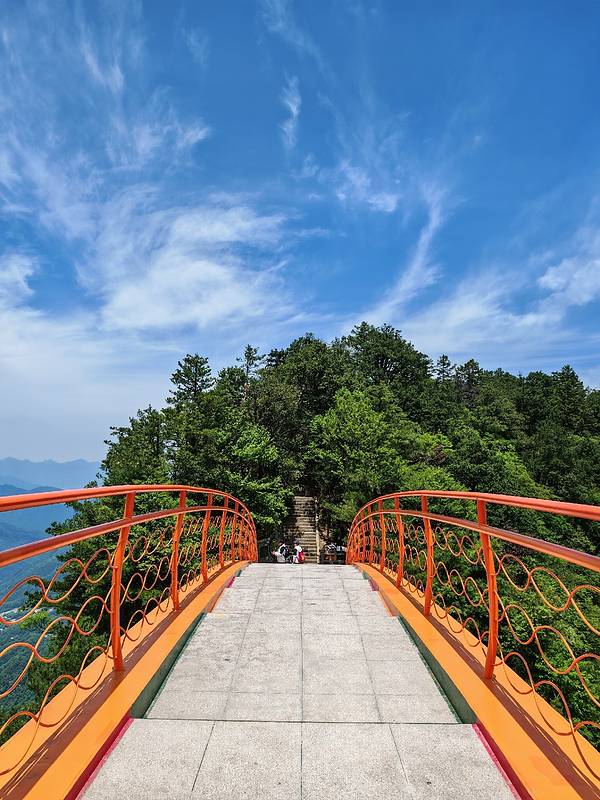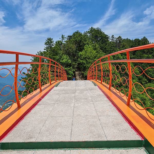天燕彩虹桥,又称飞云渡,是神农架林区天燕景区的标志性景点。桥型为单孔无铰链双曲线钢架拱桥,全长58米,宽3-5米,采用全焊钢结构,拱肋为提篮式布置,既轻盈又稳固。桥身涂满橘色,宛如彩虹横跨燕子垭壑口上空...