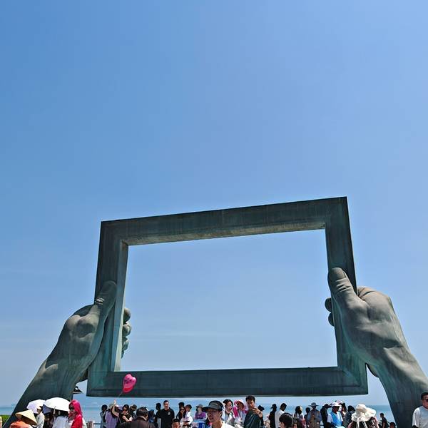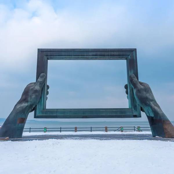 威海大相框,正式名称为《画中画》,是威海公园的标志性雕塑,位于山东省威海市海滨中路与胶州路交叉口东北100米处,地处威海公园内,顺海而建,面向威海湾。相框线条简洁刚劲,色调古朴厚重,托举的双手饱经沧桑...