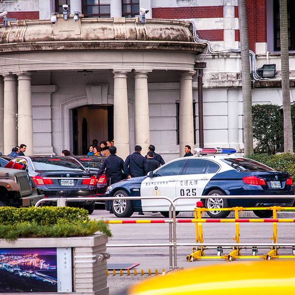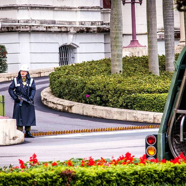“总统府”是对游人开放的,只是我们来的很不巧,周日恰恰是唯一不对外开放的日子走出书店,行不多远便来到“总统府”,其规模之小出乎预料,恐怕大陆某镇政府也要比它气派。“总统府”是对游人开放的,只是我们来的很不巧,周日恰恰是唯一不对外开放的日子。台北“总统府”建筑风格为巴洛克式...走出书店,行不多远便来到“总统府”,其规模之小出乎预料,恐怕大陆某镇政府也要比它气派。“总统府”是对游人开放的,只是我们来的很不巧,周日恰恰是唯一不对外开放的日子。台北“总统府”建筑风格为巴洛克式建筑,在日本殖民统治时期曾作为台湾总督府,于1919年完工以后,就一直是台湾地区的最高权力中心所在。院内的军车和路障多少渲染出一丝紧张气氛,总统府道路一侧除了我们一家三口便只有几个安保人员,不过我们一路拍照也未受阻拦。总统府院内站岗的阿兵哥,戴着一副近视眼镜,脚边是竖起锯齿的路障。走到大门口的时候才发现原来101大厦选址还是有讲究的,正在“总统府”远端的中轴线上。拍完这张照片后有安保人员走上前来说拍照只能去路对面,是非之地,听从安排是上策。另外一侧的十字路口是台北第一女子高级中学,这地址算是黄金宝地了吧。滚动屏上显示着禁止送礼宴请的字幕,看来台湾校园反腐抓的挺紧。路口处是机车大军,绿灯一亮他们就如离弦之箭呼啸着飞出,甚是拉风。注意他们停放的位置,在台湾,汽车停车线前往往会划有机车停车等候区,如果驾车不小心越线是会被处罚的。今天的游客很少,总统府对面专门的拍照平台上依然只有我们一家三口。几个安保人员在周围警戒,是不是有点国家要员出访的赶脚?拍了几张照后,突然有安保摆手示意我不许再拍照,我一时云里雾里,回头看看身后的停车场,却也不见什么人过来。再回头间,却见三辆宝马七系轿车鱼贯驶入总统府,侧门处有一行人出来迎接,闪光灯闪个不停,院子里瞬间热闹起来。车门打开,下车的彪形大汉明显都是保镖,而最后下车的明显是个大人物。下意识的举起相机拍了几张,焦距有限只能远远拍个大概,此时我们身边的安保人员如临大敌,不过都是面向总统府,无暇顾及我们。等喧嚣散尽,人们都进入建筑,我回看放大照片时忍不住惊呼了一声--马英九!照片中刚才抵达的要员正是台湾领导人马英九!这张侧面照最为明显,当然前面照片中微微有些驼背的身影大家也已经非常熟悉了。今天是1月24日,四天之后的1月28日马英九便登上了南海太平岛,为中华民族宣誓南海主权,不知此次会晤是否与那次行动有关。昨天和今天早上,两次看到过马英九的名字,当时我都在想能否见到小马哥,没想到今天愿望成真。刚刚我们还在为不能参观遗憾,现在我们却开始庆幸今天不是开放日了。其实这也应该是我们面对生活的态度,不要遗憾错过,珍惜遇见自有回报。总统府上空依然乌云笼罩,此时国民党刚刚败选,两岸关系再添不确定性。此时一群鸽子飞过总统府上空,盘旋良久,此刻唯一祈愿便是两岸和平。 展开
