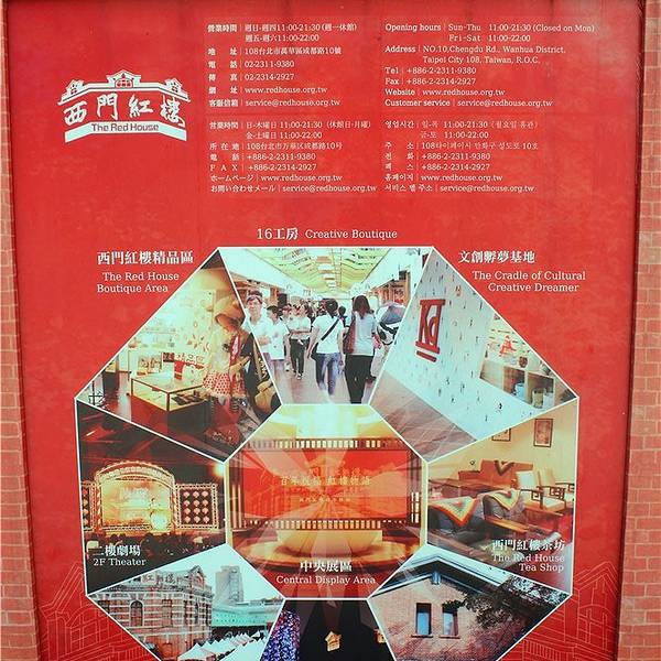 实用 说是景点倒也不错,红楼是个古建筑,里面的内容是新的,老人对此可能不感兴趣,可能年轻人更加喜欢吧...西门红楼在台北市万华区成都路上,与西门町徒步街紧挨着,两个正对着,所以乘坐捷运(就是地铁啦)抵达西门站,出来往前走就可以看到一个砖红色的洋楼,这就是西门红楼啦!这里有两层楼高,修建于1908年,以前也...西门红楼在台北市万华区成都路上,与西门町徒步街紧挨着,两个正对着,所以乘坐捷运(就是地铁啦)抵达西门站,出来往前走就可以看到一个砖红色的洋楼,这就是西门红楼啦!这里有两层楼高,修建于1908年,以前也叫做“八角堂”,后面还有一个楼还是两个,反正这里加起来也叫做西门市场,现在这里也算是文物啦!现在这里已经和以前功能不同了,这里以文化产业后动为主,有创意集市,有咖啡厅,还有个电影院,特别多的文化展览,小创意饰品,看上去非常有趣,当然这里也是免费的。说是景点倒也不错,红楼是个古建筑,里面的内容是新的,老人对此可能不感兴趣,可能年轻人更加喜欢吧,游览时间不长,一个小时半个小时就可以了,可以算是游览西门汀的附属景点哦。 展开