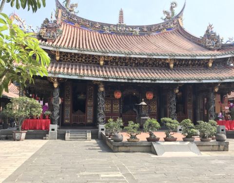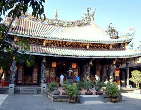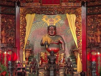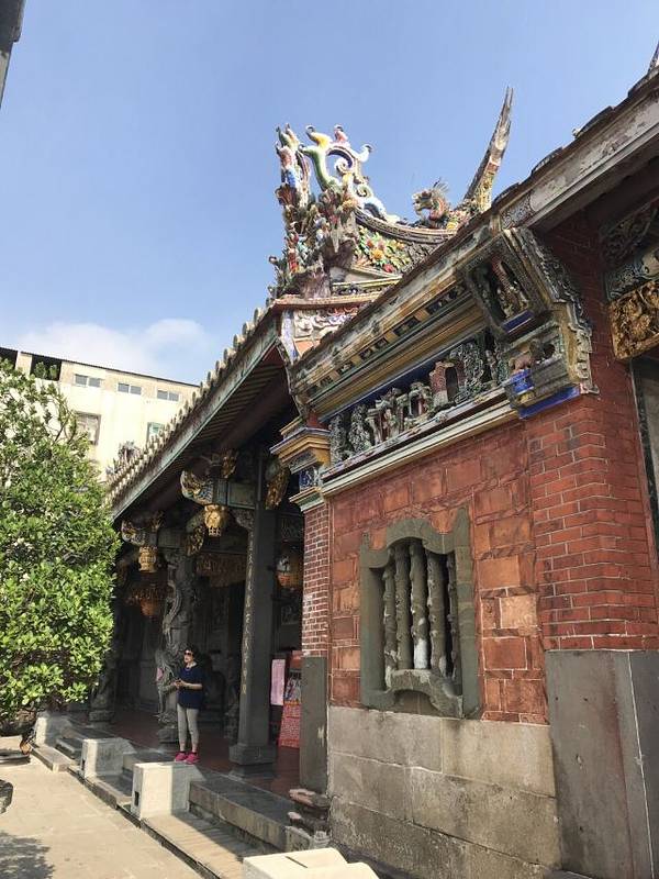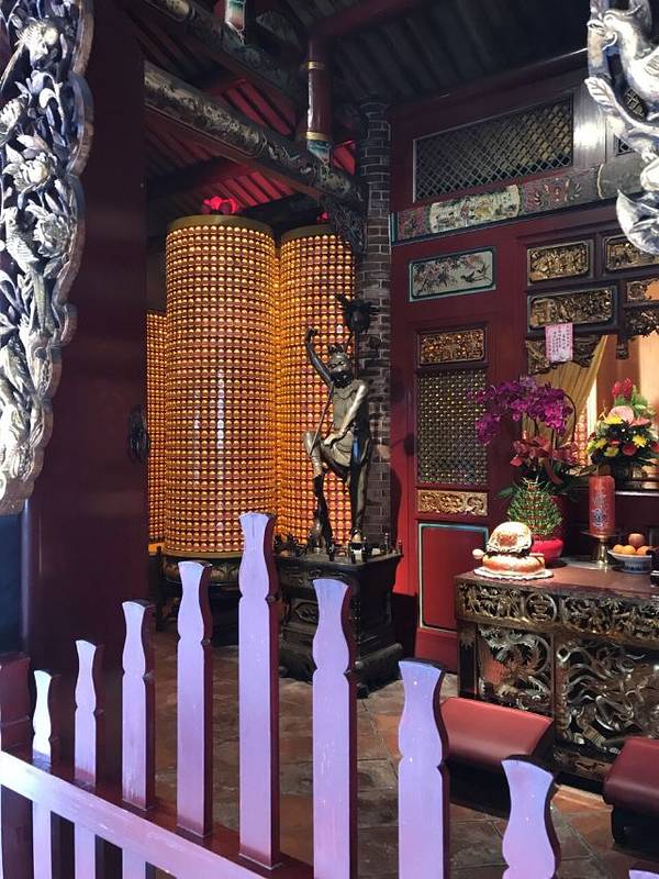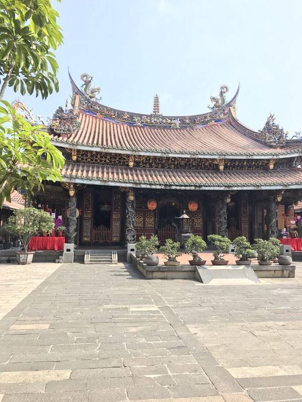 这个庙据说是台北的三大庙之一。 庙堂的壁画是上画的是历史故事,三英战吕布、徐母骂曹等等这个庙据说是台北的三大庙之一。供奉的主神是一位神医,被闽、台称为“保生大帝”。 这座庙已有二百年历史,规模较大,奇怪的是一座庙在马路的南、北两侧,分成二个部分。 庙堂的壁画是上画的是历史故事,三英战...这个庙据说是台北的三大庙之一。供奉的主神是一位神医,被闽、台称为“保生大帝”。 这座庙已有二百年历史,规模较大,奇怪的是一座庙在马路的南、北两侧,分成二个部分。 庙堂的壁画是上画的是历史故事,三英战吕布、徐母骂曹等等。庙中还设有图书馆。 很有意思的在后殿中间供奉神农,关帝和孔圣一文一武在神农的二边。其他还有许多菩萨,叫不上名,但没有大雄宝殿、没有如来、观世音。却有掌管妇女产育婴儿成长的“註生娘娘”。 展开