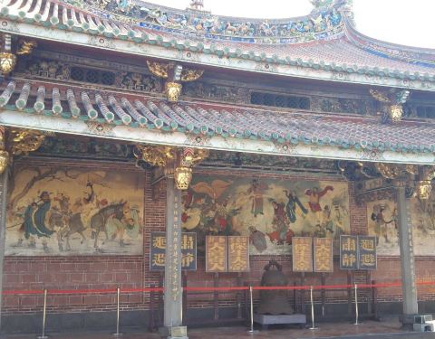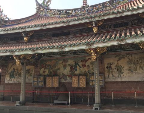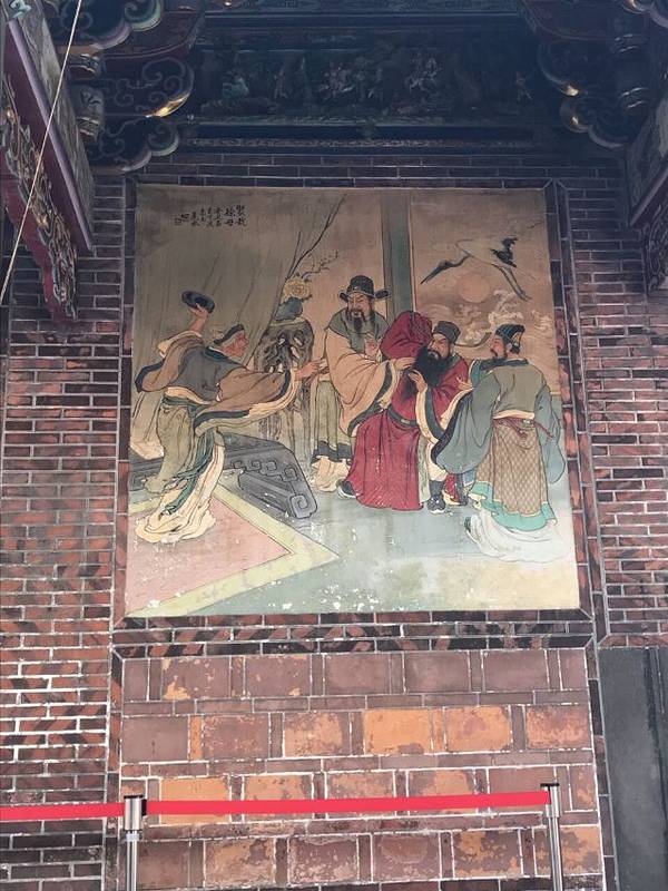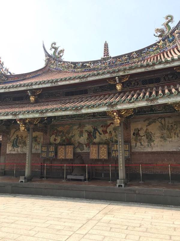这个庙据说是台北的三大庙之一。庙堂的壁画是上画的是历史故事,三英战吕布、徐母骂曹等等这个庙据说是台北的三大庙之一。供奉的主神是一位神医,被闽、台称为“保生大帝”。
