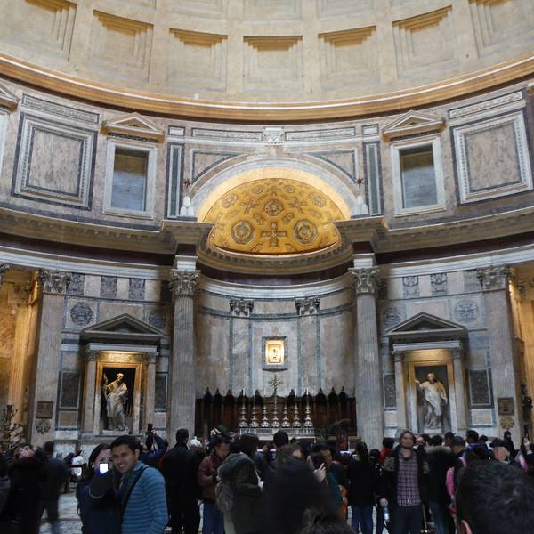 纳沃纳广场继续往东两三个街区就到了万神殿,这是世上唯一保存完整的罗马帝国时期建筑纳沃纳广场继续往东两三个街区就到了万神殿,这是世上唯一保存完整的罗马帝国时期建筑。始建于屋大维时期,后来被毁后由罗马皇帝哈得良重建。大殿拱顶正中有个大洞就是唯一外光源。《天使与魔鬼》里兰登解谜时就...纳沃纳广场继续往东两三个街区就到了万神殿,这是世上唯一保存完整的罗马帝国时期建筑。始建于屋大维时期,后来被毁后由罗马皇帝哈得良重建。大殿拱顶正中有个大洞就是唯一外光源。《天使与魔鬼》里兰登解谜时就误以为它是“魔鬼之窟”。四个字形容就是古朴简约。文艺复兴三杰之一的拉斐尔的墓就在这里。 展开