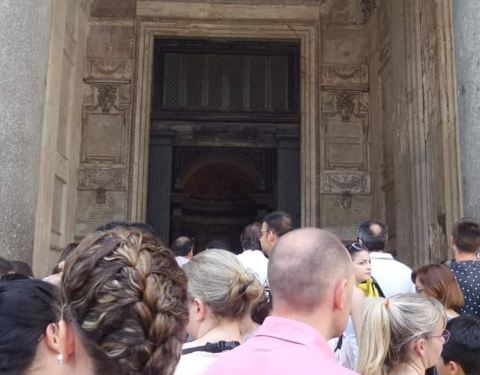 我们抵达万神殿时正逢弥撒中,所有观光客都被屏除在外,直到典礼结束才依序入内我们抵达万神殿时正逢弥撒中,所有观光客都被屏除在外,直到典礼结束才依序入内。 这座罗马最古老的教堂,至今仍然是居民信仰的中心,周周礼拜弥撒而不辍,这是何等令人动容。正面的圆柱据说都是原汁原味,只有左...我们抵达万神殿时正逢弥撒中,所有观光客都被屏除在外,直到典礼结束才依序入内。 这座罗马最古老的教堂,至今仍然是居民信仰的中心,周周礼拜弥撒而不辍,这是何等令人动容。正面的圆柱据说都是原汁原味,只有左侧两根有点色差的,是后来补上去的。 进入万神殿内不能错过的,当然是举世闻名的天眼洞,整座万神殿的采光便由此而来。 展开