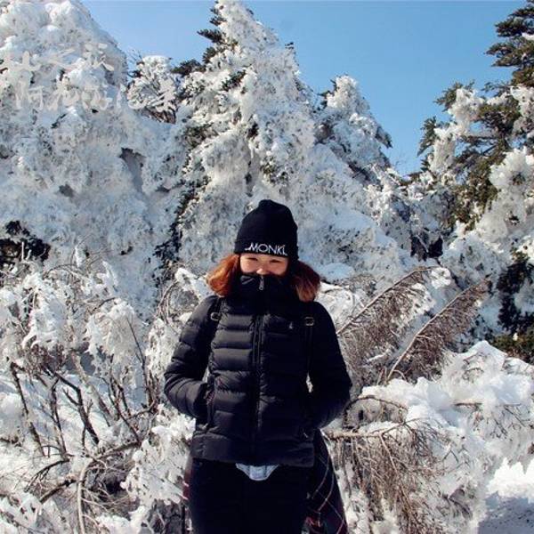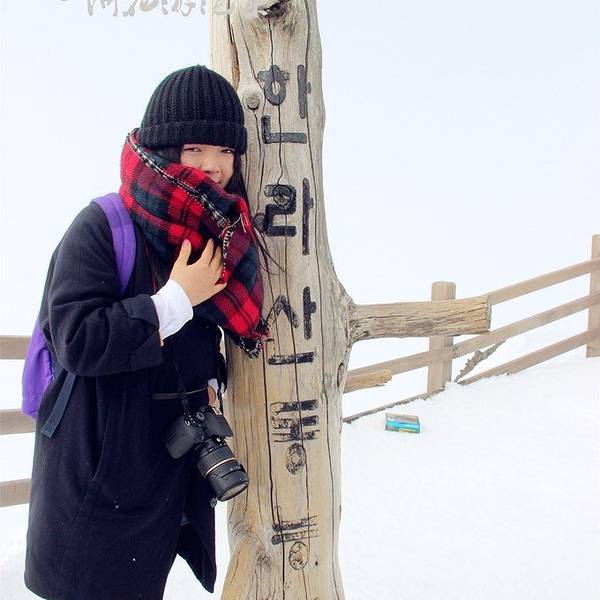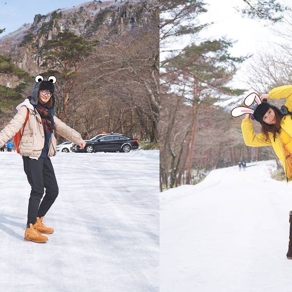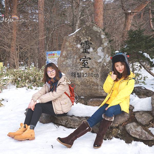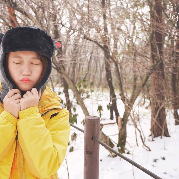 那啥,已经是鸡年了,怎么还能说以梦为马的祝福语呢?那我们就祝您,鸡年大吉吧。我忙着一路装13,wuli美人儿l姗姗则一路忙着玩雪。越往上走,温度越来越低,可玩嗨了的我们已经忘了寒冷,手脚冻冰了也无所谓。从灵室巴士站到灵室路线的入口,足足要走2公里,好在有志同道合的小伙伴一路陪伴,我们终于要走到登山步道真正的入口啦~在海拔1280的灵室入口打个卡,和汉拿山相比,180米海拔的城山日出峰真是算个X啊~不过我要傲娇地表示,和我们大四川的山川相比,汉拿山也就…表现很一般嘛!wuli姗姗彻底沦陷在这一片白茫茫的风景中无法自拔,你们一定不愿意接受一个平时一本正经的氧气美女变成一只雪猴子,至少我是无法接受的hiking的时间过得很快,一转眼就到了打道回府的时候,满足了美人儿看雪的愿望,此次旅行也接近了尾声。