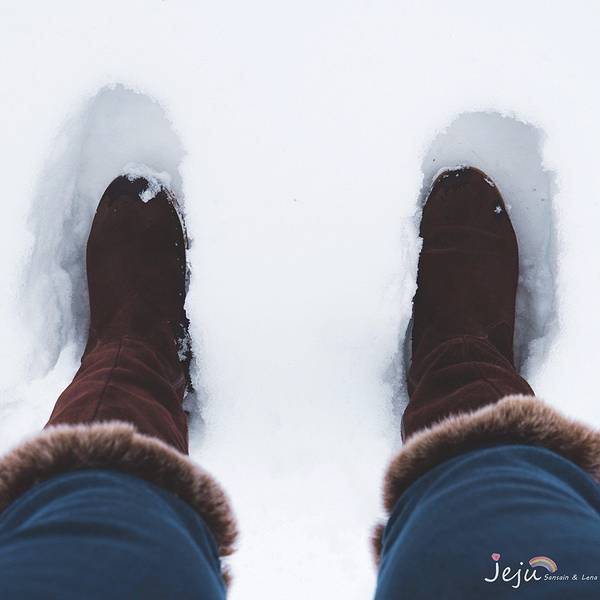 这雪踩下去,深的地方可以超过我的膝盖。其实我自己也没有见过积得如此厚的雪,想想还是有些小激动呢~这一次的济州之行,一路上遇见很多好心人,也遇见了不少有趣的人,可是在汉拿山遇到的这一对,却是让我最难忘记的。