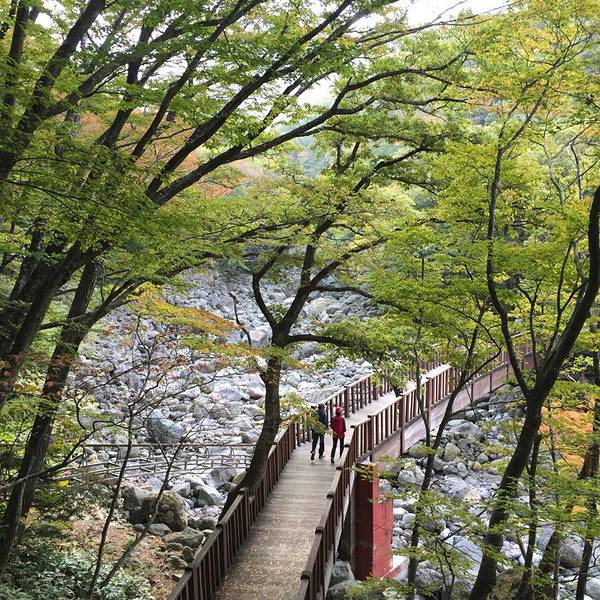 而下山路也远没有想象中轻松,最主要原因也是因为地上的岩石非常难走,坑坑洼洼,很容易崴脚,所以还是前边提到的,要穿登山鞋,也要带登山杖,身边的韩国登山者都是全副武装,看上去非常专业。我们上山用了4个半小时,下山也没有节省太多,用了3个半小时,在休息站做了短暂的停留。冬天天黑的早,建议还是早一点去,趁着亮早点下山,下山后只要在来时的马路对面等车就好了。