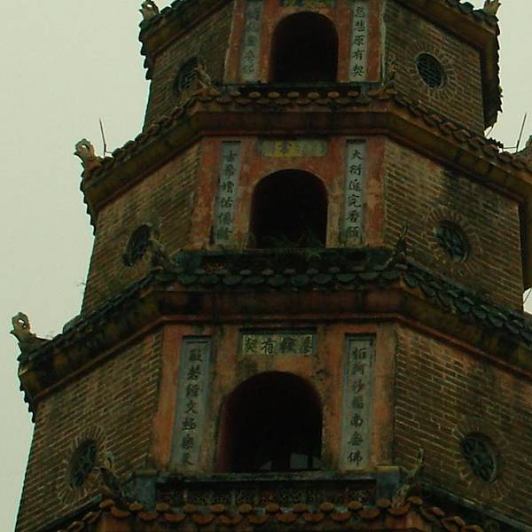 是迁都顺化的阮朝的皇家寺院。天姥寺塔又称福缘塔非常有名。最好上午过去,中午前离开是迁都顺化的阮朝的皇家寺院。是阮朝第一位皇帝下昭敕建的。距今以有500年的历史了。就在距离顺化城几公里外的香江畔。天姥寺塔又称福缘塔非常有名。最好上午过去,中午前离开。否则太晒。