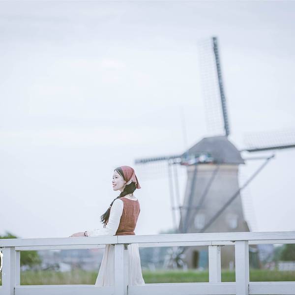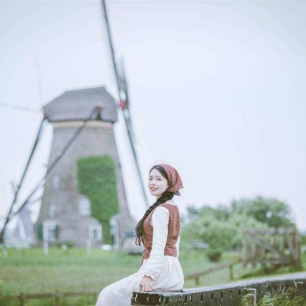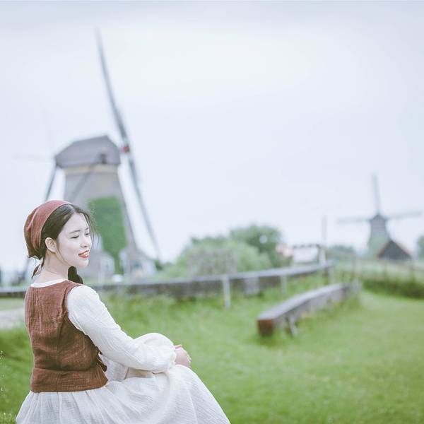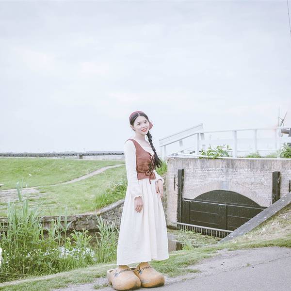 因为风车村特别大,所以很多荷兰过来参观都喜欢骑单车游览,而且这里会有很多自行车车队专门汽车过来...荷兰的代表除了郁金香以外,还有就是风车。在我的印象里面,风车就是荷兰的专属,在草原,在田野一排排风车悠悠滴转,转了多少个岁月多少个年华。从市区到达小孩堤防风车村并不简单,我们选择大清早出发,参观的...荷兰的代表除了郁金香以外,还有就是风车。在我的印象里面,风车就是荷兰的专属,在草原,在田野一排排风车悠悠滴转,转了多少个岁月多少个年华。从市区到达小孩堤防风车村并不简单,我们选择大清早出发,参观的人也比较少一点,从鹿特丹中央车站搭乘地铁在于Zijdplein下车,不远处有个公交车站,转乘90路车,车程大约50分钟,而且公交车一小时一班,回程的时候可以留意车站的时间告示牌,预算时间等车。公交车开向了鹿特丹郊区,我们下车后发现车站很方便,下车的地方就能看到小孩堤防风车村的入口。小孩堤防风车村是荷兰风车村中最有名的一个,因为它从建设以后就从来没有搬迁过,荷兰很多地方的风车村都是东凑西凑将风车放在一起的,只有小孩堤防风车村独一无二,它保留最原始的建筑风格,原汁原味。我一直对这个风车村的名字由来比较好奇,听介绍说,小孩堤防风车村的名字来源主要有两种说法。有说是因为以前这里的堤防是由童工修建而成,还有一说更加贴近实际情况。是由于这里的风车相比阿姆斯特丹的风车要矮小一些,所以看起来像小孩子。早上太阳还未升起,空气有点冷,荷兰的郊区很空旷放眼望去远处的田野一望无际,映入眼帘便是一个个高大的风车,风车分布在农田的不同地方,不管走在哪里你都能看到它的身影。小孩堤防风车村共有19座风车,风车与风车之间间隔得比较开,19座风车仅有1座是转动的并且可以入内参观。小桥横跨河流之上,可以乘坐风车村里面的游船游览欣赏风车。今天特意穿着了一个非常农家少女的服装,很像在牧场放牧的少女。看着自己的打扮,再加上背后的风车,是不是很像子母牛奶的包装盒?朋友还笑我我就是子母牛奶的代言人,活脱脱从牛奶盒跑出来的,这么说还真是越看越像!走过小桥来到了这个会转动的风车下,很小就知道风车是荷兰的特色,但是从来不知道真正的风车是长什么样子的。当站在风车下,看到如此庞大的风车的时候还是会有点震惊。风车高约20米,呈一个圆柱体,房顶的顶端会延伸出一个轴,风车转动的叶片就固定在肘子上,叶片特别大,可以达到15米,也就是相当于叶片在转动的时候离地面很近。走入风车内,可以参观风车内部的结构,门口有一排荷兰木靴,似乎已经放了年代已久,铺满了灰尘。风车了里面是木楼梯,楼道倾斜而且狭小,每次只能允许一个人通过。