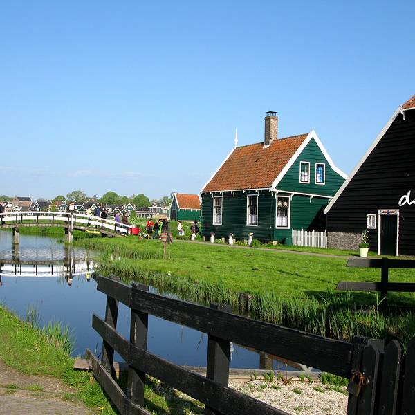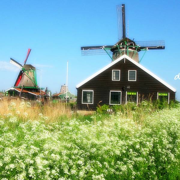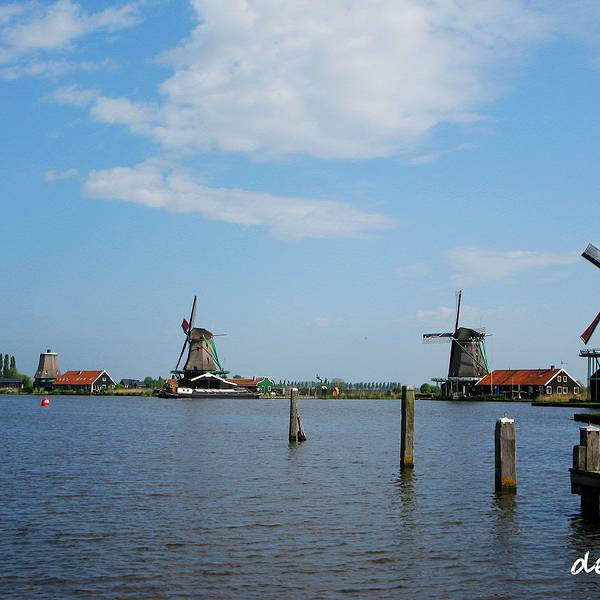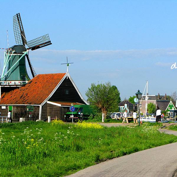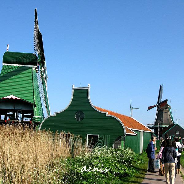 村内河网密布,沼泽无数,低矮的房屋衬托着保留下来的大风车,虽然这些风车已经没有实际用处,只是作为旅游项目继续运作。毕竟这是17、18世纪荷兰生活的一部分,这种环保的机器推动了这个国家的发展,