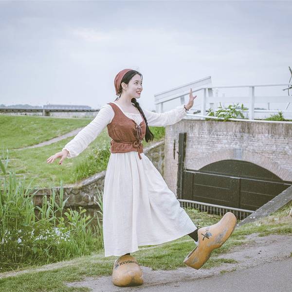 清晨的阳光洒进房间,船外的景色又有些不同,一副浓浓的牧场风情,我们到荷兰了,这个世界身高最高的国家清晨的阳光洒进房间,船外的景色又有些不同,一副浓浓的牧场风情,我们到荷兰了,这个世界身高最高的国家。小孩堤防是我们到荷兰的第一个景点,它处于南荷兰省的一角,是风景优美的瓦尔河和梅尔韦德河的一部分,...清晨的阳光洒进房间,船外的景色又有些不同,一副浓浓的牧场风情,我们到荷兰了,这个世界身高最高的国家。小孩堤防是我们到荷兰的第一个景点,它处于南荷兰省的一角,是风景优美的瓦尔河和梅尔韦德河的一部分,在莱茵河三角洲流域的长期影响下逐渐形成。这里保存着最为著名的19架源自18世纪的风车。这里的海平面偏低,整个小村庄位于低洼之间,在这些风车的帮助下从海中开垦出广阔的土地,围绕四周的是堤坝。古朴的风车一架架打转着,幸运的是天气正好,要知道在荷兰一年当中几乎只有70多天是晴天,被我们赶上了。芦苇茂盛地被风吹拂,发出沙沙沙的声响。在自行车道上,来往着悠闲自在的当地人,他们也喜欢到这里欢度假日。荷兰最有名的国宝木屐,哈哈哈真的好大好诙谐。相机拍累了直接上手机了,手机好像拍出来更自然了。阿姨在芦苇花海中显得格外年轻。哈哈哈哈阿姨忍不住拿走我的草帽给自己带上,瞬间肢体动作都灵动了起来~站在有坡度的草地上,风吹过,裙摆飘起,吸引了众多外国友人的眼光。