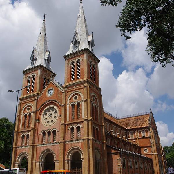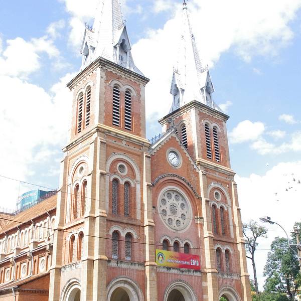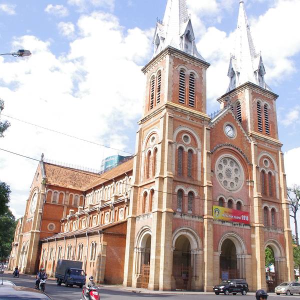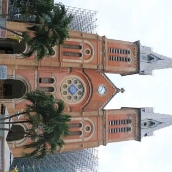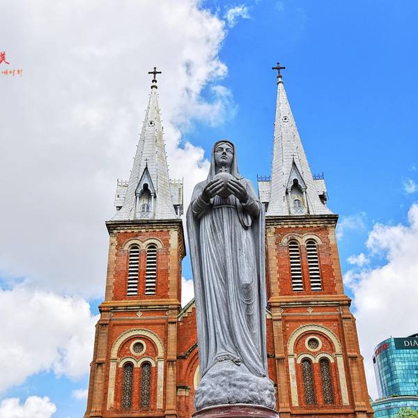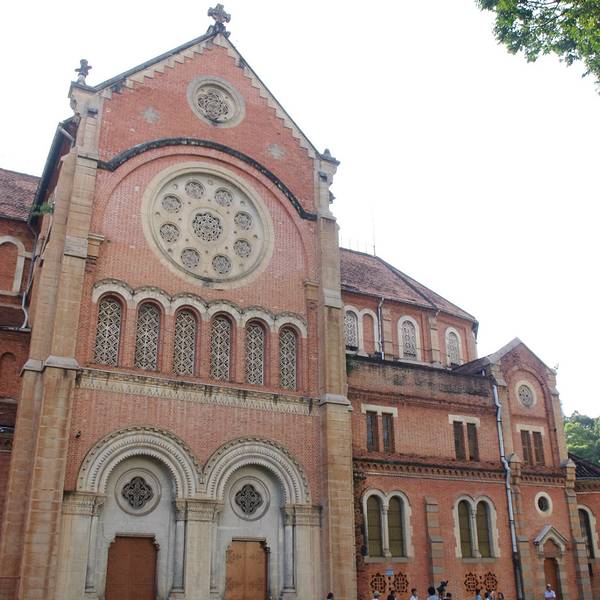 金骆驼 但是教堂外部是非常合适拍照的,而且这一片是胡志明市的中心,彼此景点都挨着的,非常方便从胡志明市的统一宫步行1公里不到就到了市中心的红教堂(Nha Tho Duc Ba),这可是胡志明市的地标性建筑哦。红教堂因使用红砖建造而得名,建造所用红砖全部从法国运来,红教堂建于1883 年,即便百余年过去,色泽...从胡志明市的统一宫步行1公里不到就到了市中心的红教堂(Nha Tho Duc Ba),这可是胡志明市的地标性建筑哦。红教堂因使用红砖建造而得名,建造所用红砖全部从法国运来,红教堂建于1883 年,即便百余年过去,色泽依然鲜明,毫无褪色。大教堂仿照巴黎圣母院钟楼的设计,造型对称、庄重,两座塔楼高达四十米,直入云霄。教堂前还有一座重达四吨的圣母玛丽亚雕像,虔诚而平和,被一群植被和花草所包围。整个教堂建筑规模很大,通体朱红的色彩和40米高的哥特式尖顶让它看起来庄严气派。强烈建议上午前往游览,红教堂的正面在上午是顺光,适合拍照。免费开放的,不过去的时候运气不好,没有遇上教堂内部开放。但是教堂外部是非常合适拍照的,而且这一片是胡志明市的中心,彼此景点都挨着的,非常方便。 展开