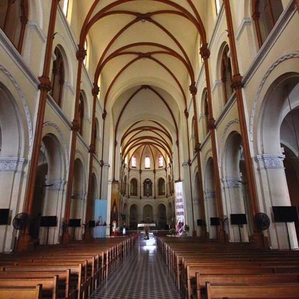 实用 我们没碰到弥撒时间,所以只能在入口参观神龛,可参观的范围很小。神龛的花窗很精美,气氛庄严而平静教堂因为红色的外观,有另一个名字更有名的名字:“红教堂”。它是西贡最著名的地标建筑,在胡志明的市中心最热闹和繁华之处,中央邮局在其左侧,一处可看两景,很方便。由于教堂开门时间是上午是8-11点,下午是2...教堂因为红色的外观,有另一个名字更有名的名字:“红教堂”。它是西贡最著名的地标建筑,在胡志明的市中心最热闹和繁华之处,中央邮局在其左侧,一处可看两景,很方便。由于教堂开门时间是上午是8-11点,下午是2点开门。我们去到教堂还没有开门,所以我们先到隔壁的中央邮局参观。到下午开门时间,我们终于能进去教堂看看它的庐山真面目了。进去,才发现教堂里面没有弥撒活动的时候座位部分是围闭起来的,教堂里面很大,屋顶很高,如果坐满人做弥撒一定很壮观。我们没碰到弥撒时间,所以只能在入口参观神龛,可参观的范围很小。神龛的花窗很精美,气氛庄严而平静。雕塑及装饰均不相尽同,于变化中尽善尽美。在教堂外面转一圈,你也会有额外收获,你的相机会收获很多漂亮妹纸的。因为这里带有欧洲风情,很多夫妻会来这里拍婚纱照,摄影师会带着漂亮的越南妹纸来这里外拍,妹纸太多,眼花缭乱,大家有兴趣可以来这里偶遇一下~~