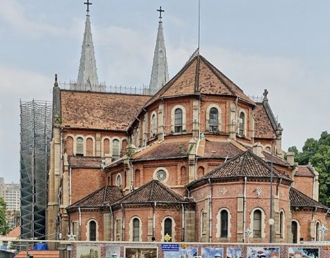 讲求高度与对称的美感 背面 半圆形后殿层层叠叠 整齐划一的雕花窗饰 有欧洲建筑的影子 越南人民...胡志明市两座教堂 皆以颜色著称 相当有趣 与中央邮局侭一街之隔的西贡圣母圣殿主教座堂 始建于1863-1880年法国殖民时期 1895年 才加上左右对称的两座钟楼尖塔 58m 高的塔顶 藏有6个铜钟 建材由法国进口 外砖...胡志明市两座教堂 皆以颜色著称 相当有趣 与中央邮局侭一街之隔的西贡圣母圣殿主教座堂 始建于1863-1880年法国殖民时期 1895年 才加上左右对称的两座钟楼尖塔 58m 高的塔顶 藏有6个铜钟 建材由法国进口 外砖是从马赛运来 斑驳的砖墙 是质朴的赭红色 “红教堂”因而得名 哥德式建筑 讲求高度与对称的美感 背面 半圆形后殿层层叠叠 整齐划一的雕花窗饰 有欧洲建筑的影子 越南人民做事挺能拖 大半年来一直包裹着绿色鹰架的教堂 就是证明 教堂前方的小广场上 有座圣母玛利亚雕像 冷眼望向 交通凌乱 街道拥㨈的这个东方小巴黎 浪漫的风情 只能在 惬意慢活的咖啡文化中寻觅了~ 展开