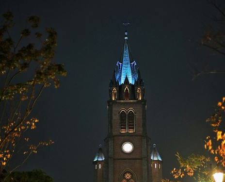 教堂四周已挂上圣诞灯饰,每年圣诞,明洞圣堂都会举行子夜弥撒仪式,点缀教堂的霓虹灯火,神秘而美丽作为 韩国 首座砖砌的哥特式建筑,有着和其他石造哥特式建筑不同的氛围。教堂四周已挂上圣诞灯饰,每年圣诞,明洞圣堂都会举行子夜弥撒仪式,点缀教堂的霓虹灯火,神秘而美丽。