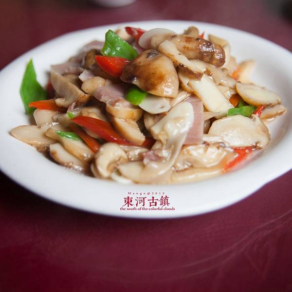 逛了大半天,饿了,找地方吃饭,找了个相对干净的菜馆“呆呆妈妈菜”,点上三个菜,一个腊肉炒松茸,一个干锅腊排骨,分量不小,够两人吃的,但是口味一般,总花费170元。
