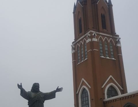 旁边就是水,就是湖,还有个神圣的十字架,感觉非常唯美浪漫。饭后前往摩天轮,结果被告知在维修不能上去DAY4:独墅湖教堂,★★★★