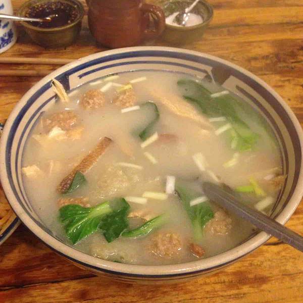羊血不光是第一吃,而且第一次听说有这种吃法,除了鸭血,鸡血,猪血又吃过羊血了,而且是切成细细条状的,很嫩很好吃,没有什么特别的味道,汤汁看着很多红油,其实一点都不辣,把浮油—撇,汤的味道也挺不错的。里面...
