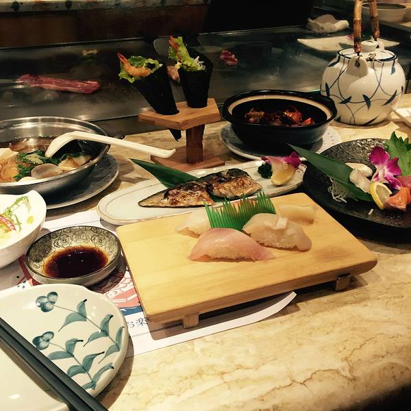 生意太好,无须迎宾,进门也没有人管的,我自己进去找人。 我们三大两小,点的团购四人套餐,好多呀!根本吃不完。 猪颈肉太咸。牛肉火锅不错,我只吃了牛肉,没吃豆腐。番茄秋刀鱼挺凉的,但其实蛮好吃的。天妇罗没觉得特别好吃。最贵的蟹很肥,蟹膏很厚!刺身拼盘还是比较新鲜的。蔬菜色拉、培根卷、蒸蛋、大酱汤、乌冬面、炒时蔬都中规中矩。酸梅汤喝得很舒服。寿司根本夹不起来,一碰就碎,我们吃了两三个,就不吃了。 服务员不知道太累还是怎么,一直皱着眉头,我也不懂啊。