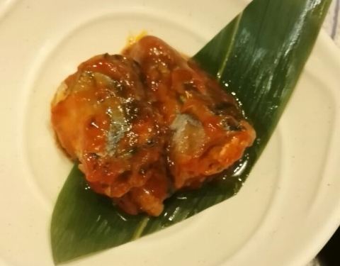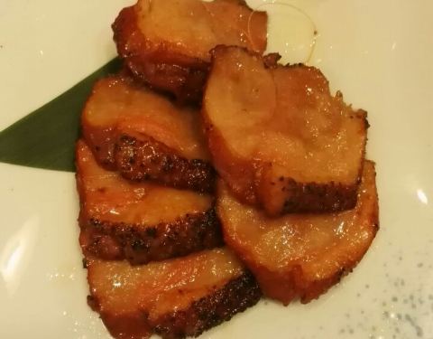 【盐烤青花鱼】:挤上柠檬汁后,没啥腥味了,外皮烤得焦焦酥酥的,鱼肉本身感觉肉质略紧,不够细。