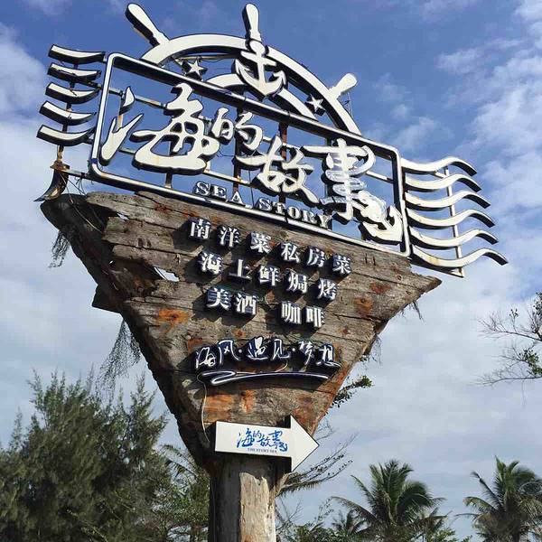 海的故事,是一个主题餐吧,位于博鳌玉带滩附近,面向大海,用旧船凳、码头灯和珊瑚石为装饰主调,打造一个渔民闯荡大海、豪迈甚至放荡不羁的氛围,深受游客喜爱。