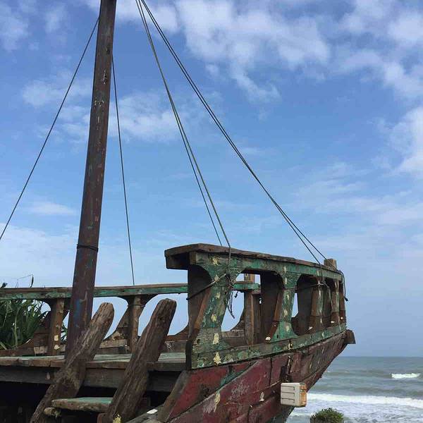 去博鳌之前并没有做任何功课,工作之余出去走了走,搜到了住处附近的“海的故事”,看起来评价很高,据说到博鳌的人都回来坐坐,穿过商业街,经过一个酒店的后门,就能看到“海的故事的停车场,就在“老房子”的隔壁。这是一个很Open的所在,游客可以随便进,随便玩,不点单也OK。“海的故事”还为游客提供了洗沙的水源和池子。户外有很大的区域,很多面海面沙滩的座位。也有很多座位是用船改造的,某些角度拍摄下,颇有海盗基地的感觉,好多三桅帆船静静停靠。以为是一个人到博鳌,只能拍拍周遭,偶尔自拍。但是,在“海的故事”偶遇了一位更资深文艺女青年。第一看看到这个趴在船头专心拍摄照片的女子,感觉很接近我心中的三毛。她很主动地为我拍了一组照片,成为我在博鳌最好的留念。我们互拍的背影,也是属于我们彼此的海的故事。惺惺相惜,却也擦身就过。这,可能是在博鳌最好的所在,以及最好的经历。