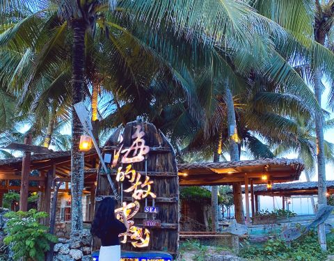 去博鳌之前并没有做任何功课,工作之余出去走了走,搜到了住处附近的“海的故事”,看起来评价很高,据说到博鳌的人都回来坐坐,穿过商业街,经过一个酒店的后门,就能看到“海的故事的停车场,就在“老房子”的...去博鳌之前并没有做任何功课,工作之余出去走了走,搜到了住处附近的“海的故事”,看起来评价很高,据说到博鳌的人都回来坐坐,穿过商业街,经过一个酒店的后门,就能看到“海的故事的停车场,就在“老房子”的隔壁。这是一个很Open的所在,游客可以随便进,随便玩,不点单也OK。“海的故事”还为游客提供了洗沙的水源和池子。户外有很大的区域,很多面海面沙滩的座位。也有很多座位是用船改造的,某些角度拍摄下,颇有海盗基地的感觉,好多三桅帆船静静停靠。以为是一个人到博鳌,只能拍拍周遭,偶尔自拍。但是,在“海的故事”偶遇了一位更资深文艺女青年。第一看看到这个趴在船头专心拍摄照片的女子,感觉很接近我心中的三毛。她很主动地为我拍了一组照片,成为我在博鳌最好的留念。我们互拍的背影,也是属于我们彼此的海的故事。惺惺相惜,却也擦身就过。这,可能是在博鳌最好的所在,以及最好的经历。