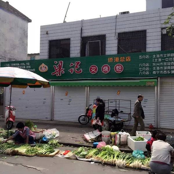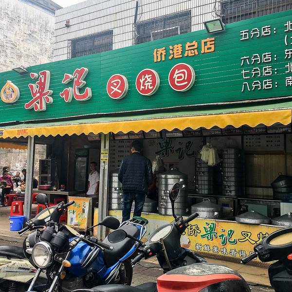 还有几家分店。它家生意很好,常常要排队。梁记叉烧包总店店铺在侨港老街上,侨港市场的斜对面