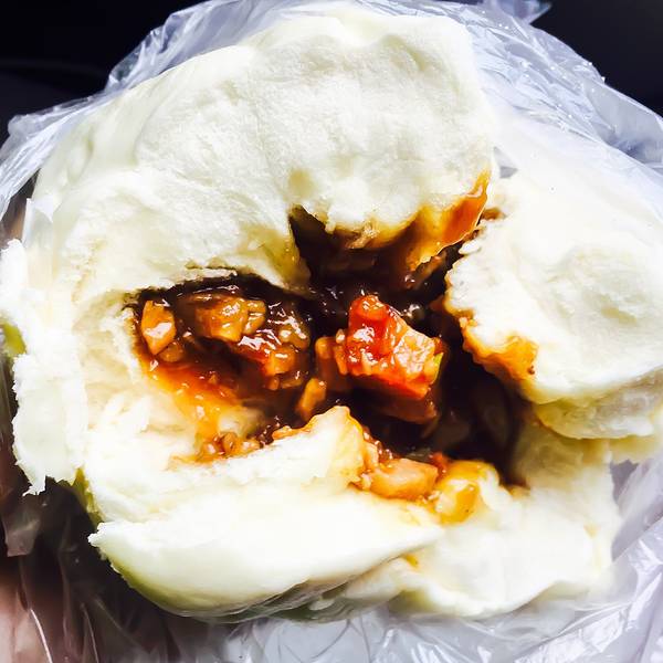 我最爱里面的馅料,还有鸡...最爱梁记叉烧包了!