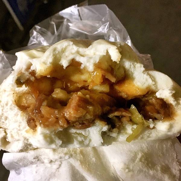 吃完炒冰,吃最后一间梁记叉烧包,叉烧包又大个,我们两个前面吃太饱就一人一半。连我朋友不喜欢吃叉烧包都说它好吃。