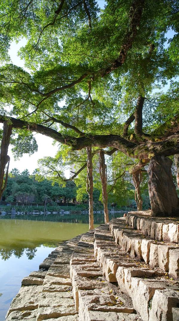 在福州这座充满烟火气的城市里,藏着一处宛如江南水乡般的静谧之地——流花溪公园。它像是城市喧嚣中的一首舒缓乐章,让每一个踏入其中的人,都能沉醉于那份宁静与美好,收获一次难忘的游玩体验。 踏入公园,最吸睛的当属那棵千年“甲天下树”榕。它如同一把撑开的巨型绿伞,遮天蔽日。树干粗壮,需数人合抱,斑驳的树皮写满岁月沧桑,繁茂的枝叶肆意伸展,向人们展示着顽强生命力。周围簇拥着众多榕树,形成壮观的榕树群,清风徐来,枝叶沙沙作响,仿佛在低语着公园的前世今生,让你瞬间被这古朴自然的氛围包裹,沉浸于历史与自然交融的奇妙意境。树下常有老人围坐闲谈,用带着福州腔的方言讲述着与古榕相关的传说,偶尔有孩童在树荫下追逐嬉戏,时光在此刻显得格外温柔。 沿着蜿蜒的溪流前行,潺潺水声相伴,仿佛是大自然演奏的灵动音符。溪水清澈见底,阳光洒下,波光粼粼,小鱼小虾在水中自在游弋,充满生机。溪边草木郁郁葱葱,四季更迭,花卉交替盛放。春天樱花烂漫,粉色花瓣飘落水面,宛如梦幻的花之溪流;夏日荷花亭亭玉立,荷叶田田,送来缕缕清香;秋季栾树挂果,金黄与翠绿交织,绘就斑斓画卷;冬日红梅傲雪,为清冷时节添一抹亮色。沿途,还能看到造型古朴的景观置石,与周围植物搭配得相得益彰,充满野趣。 若想换个视角赏景,不妨乘坐乌篷船。小船悠悠前行,船桨划开水面,泛起层层涟漪,两岸景色如流动的水墨画般徐徐展开。微风拂面,带着花草的芬芳与溪水的清新,惬意之感油然而生,恍惚间,仿佛置身于江南水乡,远离了城市的纷扰。船娘偶尔会指着岸边的老房子,讲述流花溪畔曾经的市井故事,让这趟水上之旅更添几分人文温度。 公园内的人文景观同样出彩。香积寺红墙黛瓦,庄严肃穆,寺内悠悠钟声,为这片自然之地增添了几分禅意。建新基督教堂的设计独具匠心,洁白的外观与周围绿树碧水相映成趣,据说设计灵感源自卷起的圣经手稿,为公园带来别样的异域风情,不同信仰的建筑和谐共处,体现出福州这座城市多元包容的文化气质。 从配套设施来看,流花溪公园也相当贴心。长达数公里的亲水步道平坦舒适,无论是散步、慢跑,都能尽情享受自然风光;3处儿童游乐场充满欢声笑语,是孩子们的欢乐天地;5座跨河桥梁造型各异,既是通行的要道,也是独特的景观,站在桥上眺望,溪流美景尽收眼底;每隔一段距离就设有干净整洁的公共厕所,还有许多供游客休憩的长椅,考虑得十分周到。傍晚时分,步道旁的路灯次第亮起,暖黄的光线映在水面上,与岸边人家的灯火交相辉映,别有一番温馨氛围。 不过,公园也并非十全十美。在旅游旺季,游客增多,部分热门打卡点会稍显拥挤,拍照可能需要排队等候;公园里餐饮选择较少,游玩时间较长的话,饮食方面不太方便;此外,虽然公园整体环境优美,但个别角落偶尔会出现垃圾清理不及时的情况,希望能加强日常清洁维护。 流花溪公园就像是福州的一颗璀璨明珠,融合了自然美景、历史古韵与人文风情。无论是想漫步赏景、拍照打卡,还是放松身心、感受自然,这里都是绝佳之选。它是城市中的世外桃源,等待着更多人前来探索、发现它的独特魅力,相信每一次到访,都会带来不一样的惊喜与感动。