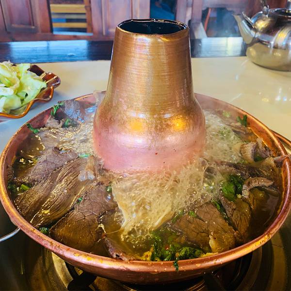 参观完就回古城了,然后早早去了这家藏餐,吃牦牛肉火锅。一锅肉很足点了壶甜茶,有点拉萨光明茶馆的味道。这个牛肉饼非常香这个酸奶和在西藏吃的酸奶不一样,一点都不酸。