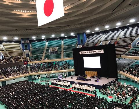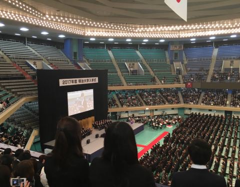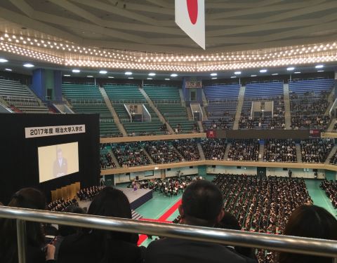 明治大学入学式,门票是私立标准的「学费」,就在皇居旁边,日本的正中心的开学典礼,气派呀,さすが私立