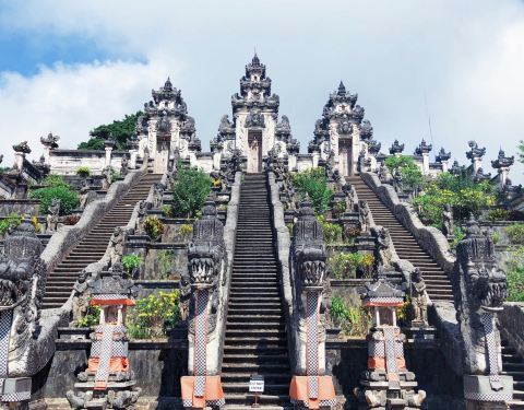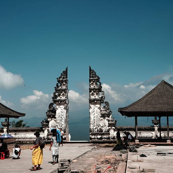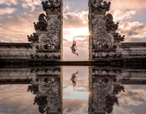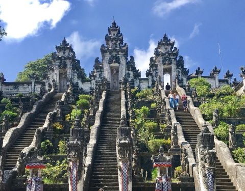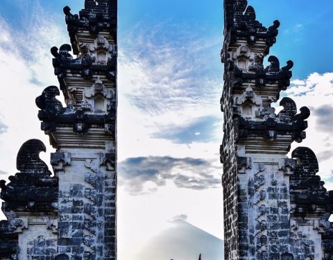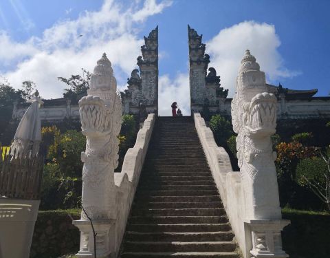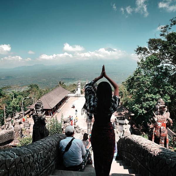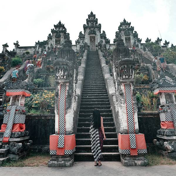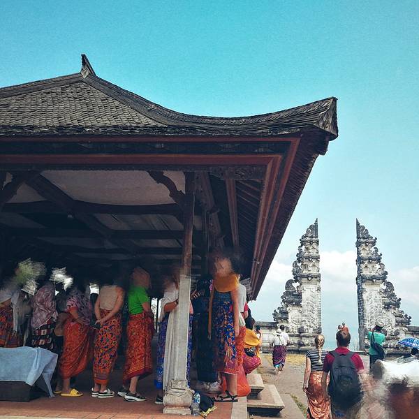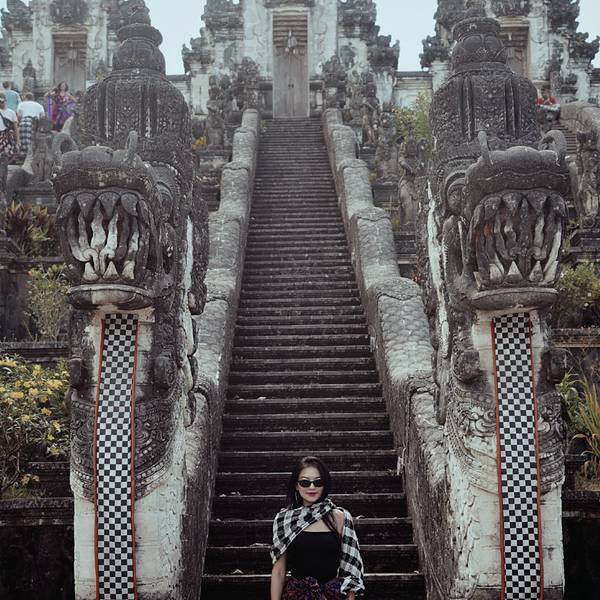 不得不说,拿着小玻璃片儿拍出的镜像的确美。寺庙里的照片不敢太凹造型,站得这么笔直,像个乖乖小学生一样因为这家酒店就在sideman区, 开车过去一小时就到天空之门了,进去要披上围巾纱笼,胳膊和大腿都不能裸露,进门时遇到两个可爱的小姑娘坐在台阶上迎接,还很主动告诉要往这边走。天空之门在高山上,正正地对着阿...因为这家酒店就在sideman区, 开车过去一小时就到天空之门了,进去要披上围巾纱笼,胳膊和大腿都不能裸露,进门时遇到两个可爱的小姑娘坐在台阶上迎接,还很主动告诉要往这边走。天空之门在高山上,正正地对着阿贡火山,视野很开阔。当天有些云雾,用肉眼可以看到火山,就是拍出来朦朦胧胧。当天有一对当地的年轻人,专门蹲守在天空之门前给游客们拍照,没有强制收取费用而是你愿意给多少都行的小费模式。大家也都纷纷排好队把相机给她拍,我把相机拿给她,她说如果你用手机拍可以拍出镜像画面,于是用手机拍了镜像的,也用相机拍了单向的。不得不说,拿着小玻璃片儿拍出的镜像的确美。站在远处能看见一点阿贡火山的影子了。寺庙里有一些年轻可爱的人,好像是景区工作人员但好像又不是,他们会很乐意给你拍照,当发现有人没穿好纱笼时也会提醒游客为了尊重,一定要围好纱笼。寺庙里的照片不敢太凹造型,站得这么笔直,像个乖乖小学生一样。天空之门对着一座供祈祷的寺庙,分三个阶梯。中间的不能上去,两边可以上去。登上去后视野极其开阔,累了也可以坐上去小憩一下,吹吹风很舒服。到达时没什么人,很快就拍到了照片,临走时人流多到爆炸,全在排队拍照片,所以建议去天空之门不是赶早就晚一些再来。 展开