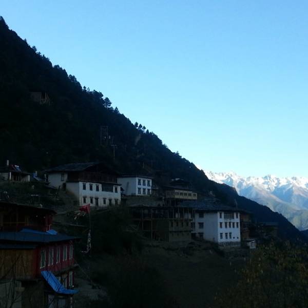 如果单单为了它攀爬这么久好像觉得不很值得,去过九寨沟的童鞋表示有点蔑视和失望,因为是枯水期湖面...窗外就是大大的雪山,我们八点要出发,七点多就必须起床,所以这个日照金顶看不看已经由不得我们选择,因为一睁眼就能看到,近在咫尺的感觉。因为前一天都是上坡路为多,脚意外地没有冷痛。今天的行程就是冰湖,...窗外就是大大的雪山,我们八点要出发,七点多就必须起床,所以这个日照金顶看不看已经由不得我们选择,因为一睁眼就能看到,近在咫尺的感觉。因为前一天都是上坡路为多,脚意外地没有冷痛。今天的行程就是冰湖,也就是翻过一座山到雪山脚下,来回24公里的山路。和我们同来的另外一队人马已经零零散散地,六人剩下3人和我们一同出发,另外两女生打算在旅馆休息,还有一大叔准备骑着毛驴进山去,后于我们出发。