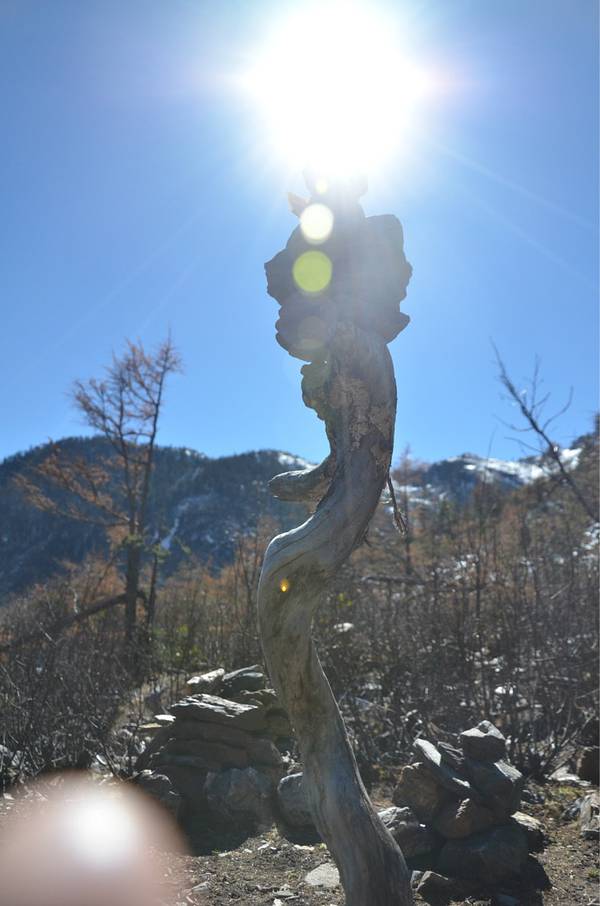 除了我,斌斌和锦,另外五人的云南之旅,其实就是以雨崩梅里为主的,六天之旅完成也是他们旅行的完结了,所以当懒死告诉我,他看了前天的风景有点失望的时候我能充分理解这种心情,但愿这天的景色可以好一些,振奋一些。而离开村庄,走入开阔的山坳里面,周围遍布葱葱郁郁的树木,牦牛和毛驴都自由自在地吃着早餐,我终于体会到这种无拘无束的感觉,景色的确比第一天的山路要好很多,只是路也难走很多,大都时候这些不能叫路,而是树木树根坏绕能踏脚的地方。虽然身体的劳累不能通过晚上休息来解除,但是因为是上坡,我好歹能跟上懒死和大都数人的脚步,而第一天走得最慢的斌斌和味精今天为了一雪前耻,像是打了鸡血一样冲在前头,带领我们走的仍然是平时徒步经验最丰富的大雁童鞋。因为靠近雪山的关系,加上有风,大本营之前的一段路面开始结冰,忽冷忽热的感觉。我们在大本营喝了个酥油茶之后继续朝冰湖攀爬,一路上的风景是不错,倒是这个冰湖——实在很难形容自己的感觉,如果单单为了它攀爬这么久好像觉得不很值得,去过九寨沟的童鞋表示有点蔑视和失望,因为是枯水期湖面很小,说蓝囧囧也实在不够蓝囧囧,我们一行人坐在山顶看着这个小小冰湖实在有点犯傻,只能多点赞叹雪山的雄伟,天空的湛蓝,丽江和雨崩的天空万里无云,阳光普照,晒黑很容易,不过我已经放弃治疗了~~~原路折返,我开始遇到了麻烦——对于下坡路为何如此缓慢和恐惧的的缘由其实我也解释过好几次,但是我觉得旁人未必能全部理解,所以我唯一能做的就是,尽力不拖后腿——这一路上我要感谢懒死的扶持,他自己也很累很累,可是下坡的时候都帮我走下去,实在无以为报阿——如果懒死看到这里的话,只要你开口,你要味精大雁还是锦??或者玩童?甚至是大森和斌斌我都帮你拆散他们哈哈哈~~原路返回也需要走12公里的山路,因为融雪的关系有些变得十分滑,反正味精大人也摔跤了~~这晚我们同样筋疲力尽地回到旅馆,味精和大雁不肯再外出,剩余的人们为了贪图新鲜一定要到其他餐厅吃个藏族特色。