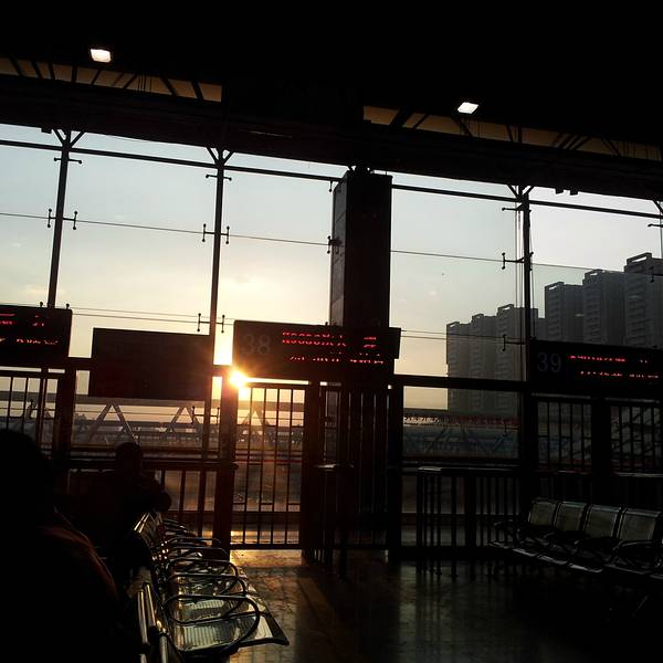 我淡定走向24小时的售票大厅里等候天亮。一进大厅,发现没有椅子坐,心想:太不人性化了吧。虽是如此,但大厅里也有向我那样在等天亮才离开的乘客。