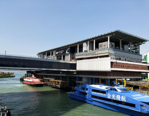 在澳门外港客运码头乘坐喷射飞航、在澳门氹仔临时客运码头、外港客运码头乘坐金光飞航、在中山港、珠海九州港、广州南沙客运港、莲花山港、深圳蛇口客运码头乘坐珠江客运可以抵达港澳客运码头。