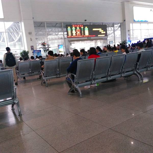 乘坐高铁的进入口是在二楼的,当然无论是一楼还是两楼都是有火车站特有的铁椅可以休息的。
